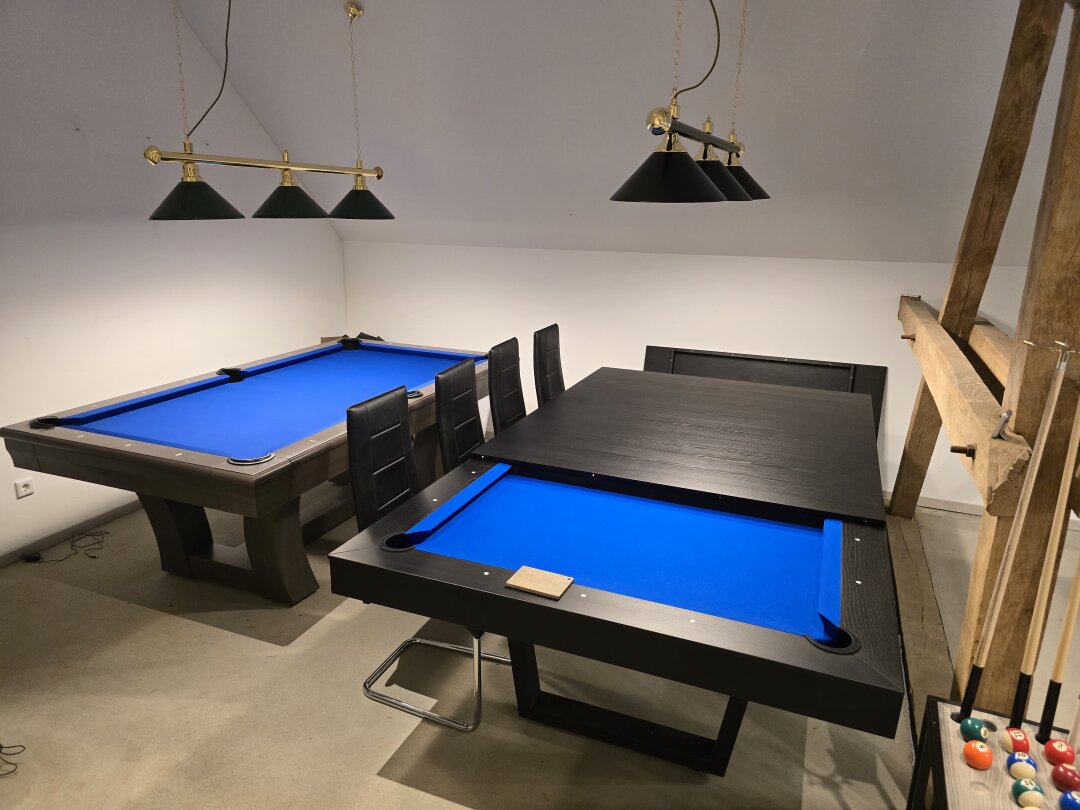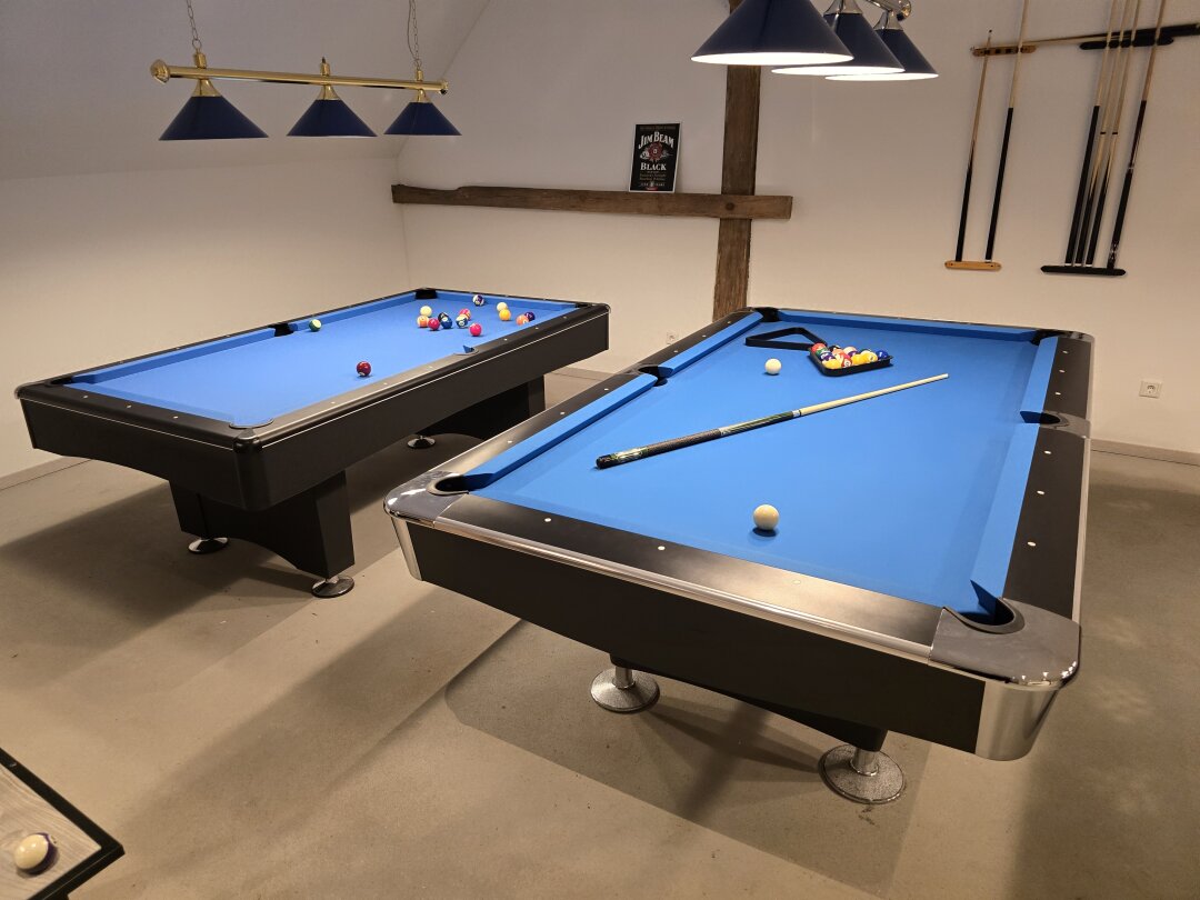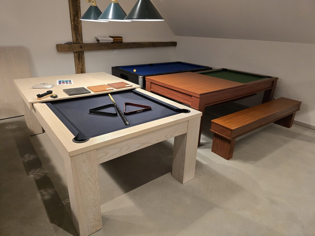 Vom klassischen Schiefertisch bis hin zum modernen Design-Modell – bei uns finden Sie eine große Auswahl an Billardtischen, Tuchfarben und Zubehör, die Sie in Ruhe begutachten können.